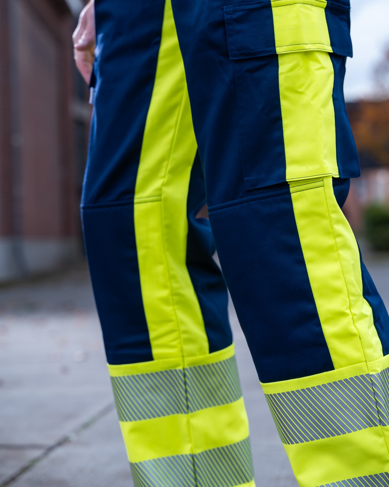 Onze werkbroek in fluorgeel-blauw combineert veiligheid, comfort en duurzaamheid. Dankzij de fluorescerende stof en geïntegreerde reflectie voldoet deze broek aan de norm voor hoge zichtbaarheid, waardoor je altijd goed opvalt tijdens het werk. De ergonomische pasvorm zorgt voor optimale bewegingsvrijheid, terwijl wij elke maat kunnen leveren – van extra klein tot extra groot.