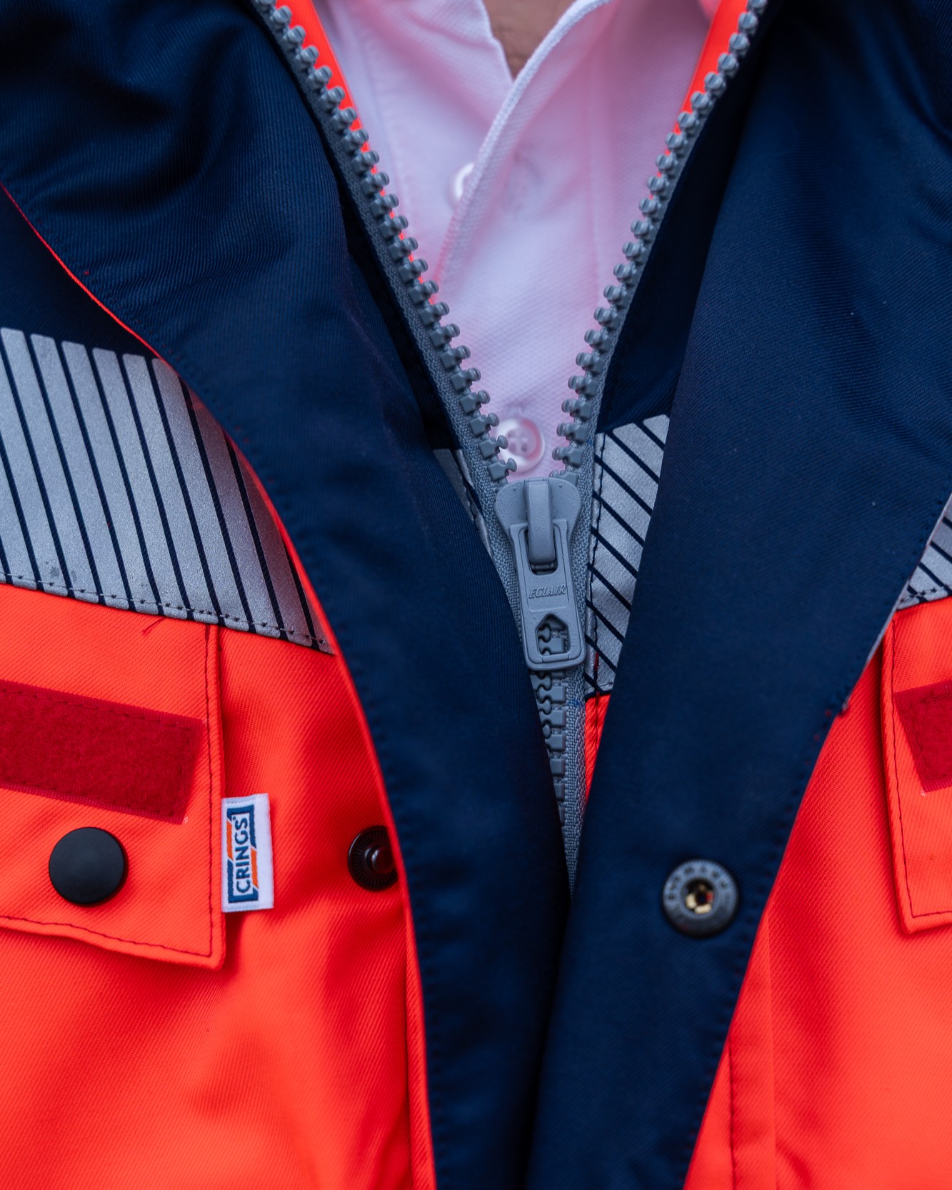Onze veiligheidsjas in fluorrood-blauw combineert zichtbaarheid, hygiëne en duurzaamheid met extra warmte voor koude omstandigheden. De dikkere, geïsoleerde constructie houdt je comfortabel warm, terwijl de geïntegreerde reflectie en fluorescerende elementen zorgen dat je uitstekend opvalt. De jas is geschikt voor wassen op hoge temperaturen en industrieel wasbaar; kleur en reflectie blijven daarbij behouden. Het materiaal voelt en is hoogwaardig, zodat uw jas ook bij intensief gebruik lang meegaat. Alle jassen zijn OEKO-TEX® gecertificeerd: vrij van schadelijke stoffen, huidvriendelijk en geproduceerd met aandacht voor het milieu. Deze jas is bovendien gecertificeerd volgens de normen die je hieronder terugvindt, zodat je zeker weet dat hij aan de vereiste veiligheids specificaties voldoet. Dankzij de ergonomische pasvorm, verstevigde afwerking en praktische details—zoals ruime zakken, een opstaande kraag met daarin verwerkt capuchon en een uitneembare wintervoering—werkt hij net zo prettig als hij presteert. Kortom: kies de veiligheidsjas in fluorrood-blauw voor zichtbare veiligheid, langdurig comfort en betrouwbare bescherming wanneer het erop aankomt.
